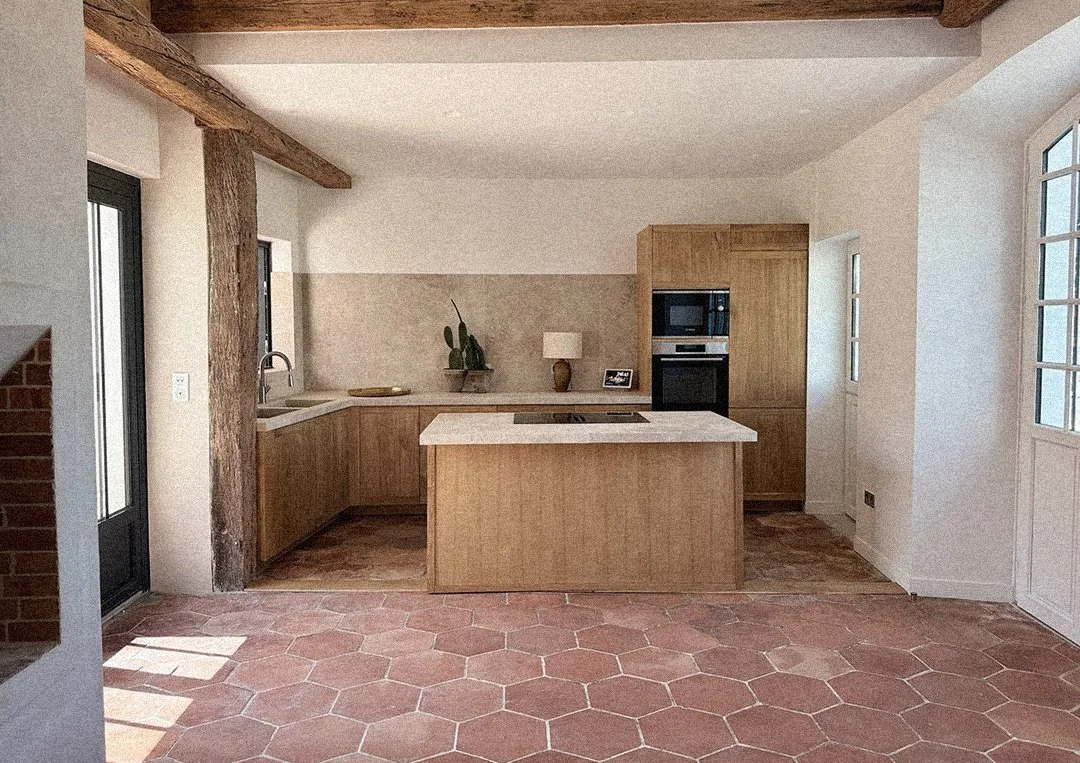 À la demande d’un groupe hôtelier, SuperBrick a rénové une demeure historique de 300 m² au cœur de Saint-Martin-de-Ré. En concertation avec les Bâtiments de France, nous avons préservé les éléments emblématiques — tomettes anciennes, escalier intérieur, mât de bateau dans la cheminée — tout en insufflant un design minimal et minéral.